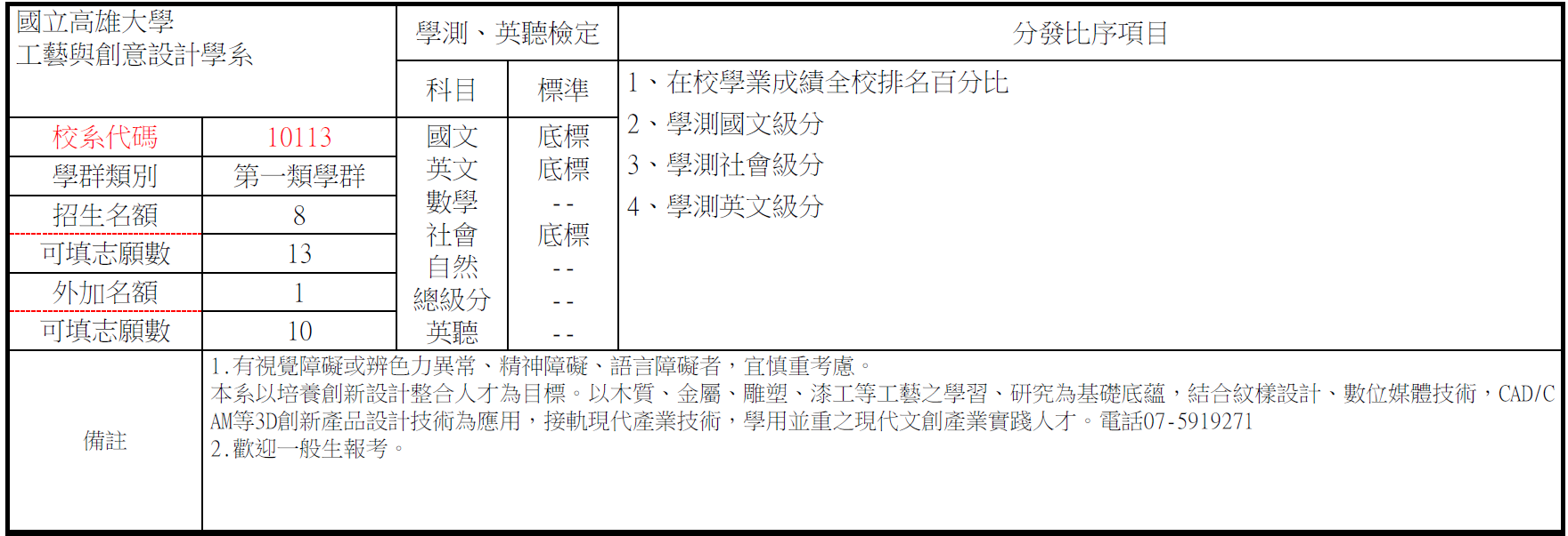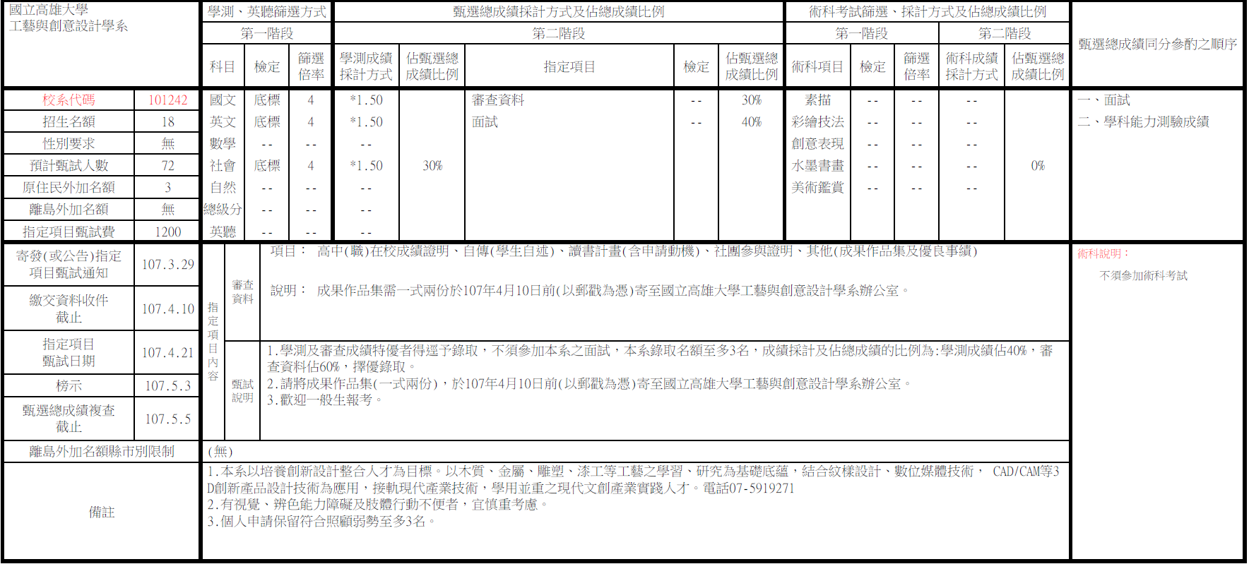 107學年度 個人申請校系分則