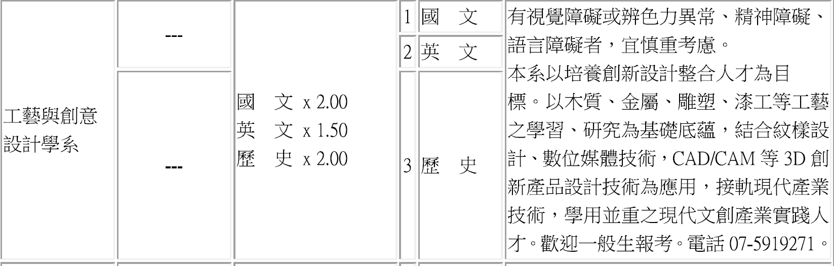 107學年度 四技二專系所分則
